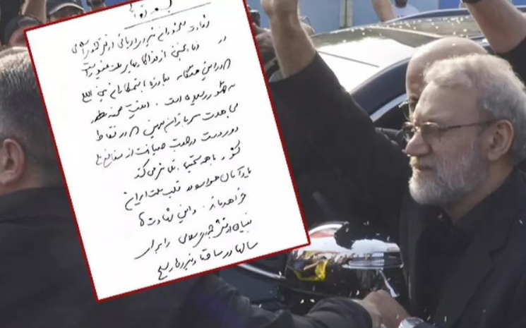 Laricani'nin sosyal medya hesaplarından paylaşılan mesaj, "Ali Laricani'nin İran İslam Cumhuriyeti Donanması askerlerinin cenaze töreninin arifesinde yazdığı el yazısı" notuyla aktarıldı.