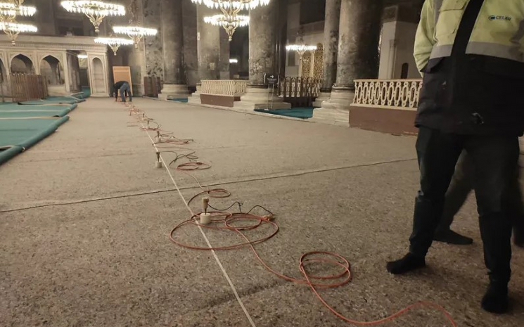 Çalışmalarda kullanılacak en ağır aracın zemine uyguladığı yük ise sadece 6 tondur, hazırlanan zemin bu yükü fazlasıyla taşımaktadır. Girişten harime kadar özgün mermerleri korumak için prekast, ahşap ve çelik elemanlarla güçlendirilmiş platform yapılmış, harimde mermer döşemeler belgelenmiş ve tüm zemin testleri tamamlanmıştır. İş makinelerinin hareket edeceği alanlarda yükü yayarak mermeri koruyan çok katmanlı geçici döşeme sistemi Bilim Heyeti'nin belirlediği teknik esaslara göre uygulanmış, zemine keçe, kum, kontra, ahşap karkas, xps, ses şiltesi ve baklava sac yerleştirilmiştir. Egzoz gazının yayılmaması için duman emici sistemler kullanılmaktadır. Ayasofya-i Kebir Camisi'nde yürütülen tüm çalışmalar, yapının güvenliğini ve özgünlüğünü korumak amacıyla Bilim Heyeti'nin denetimi altında, bilimsel yöntemlerle ve yüksek hassasiyetle yürütülmektedir. Yapılan işlemler Ayasofya'ya zarar değil, Ayasofya'nın güçlendirilmesi ve korunması içindir."